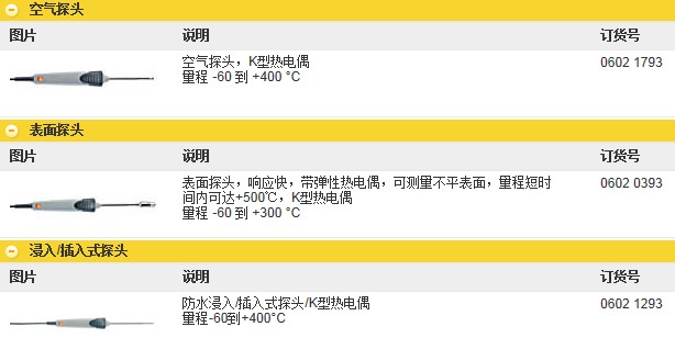 testo 830-T2紅外測(cè)溫儀的探頭選件: